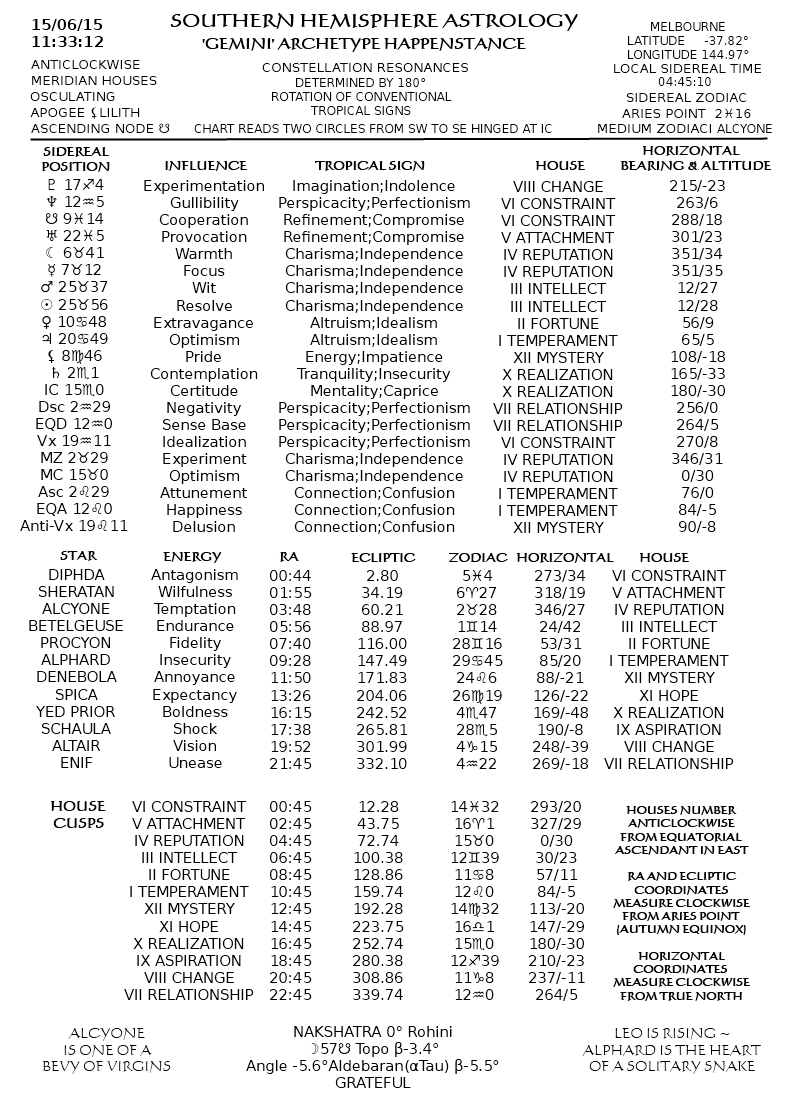 Stargazing in the south has the potential to confirm the northern resonances of the constellations, because we see them in the opposite season to their conjunction with the sun. The same opposition in the north was I am sure the seed of astrology’s structure of polarities.