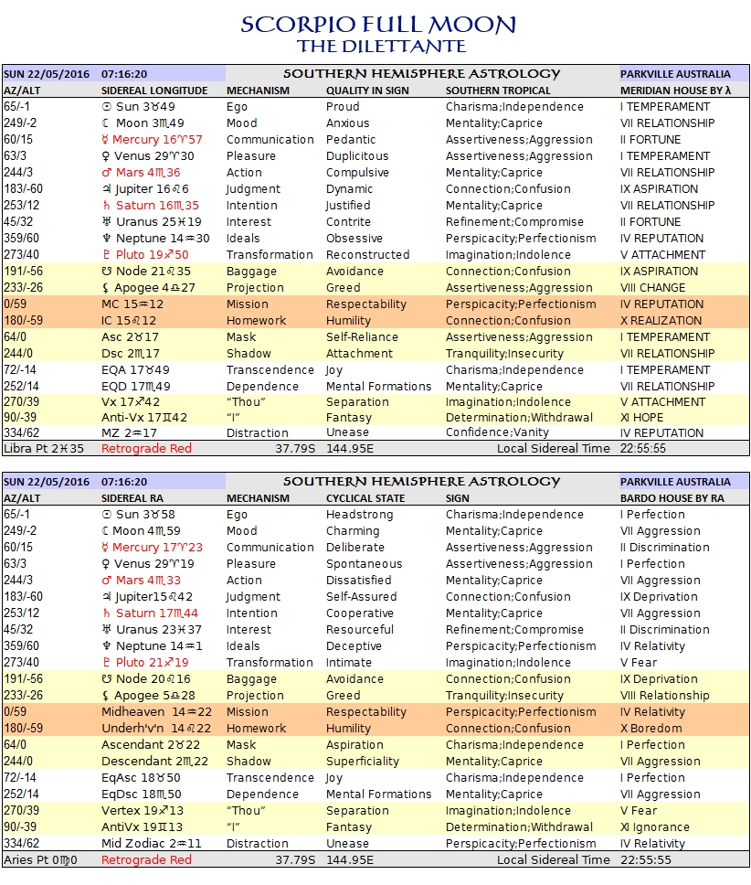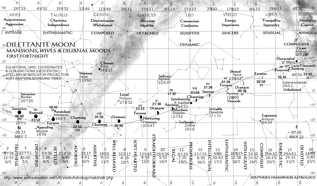 Astrological Houses, Dilettante Moon, Dilettantism, Full Moon in Scorpius, Nakshatras, Scorpio Moon, Self-Realization, Southern Hemisphere Astrology