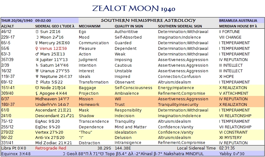 Exactly 76 years ago, 4 multiples of 19, the Full Moon of June 1940 was within a degree of this year’s, therefore in the same Nakshatra, and very close to the Sagittarius solstice point, like this one. Reading accounts of the conflicts which my parents’ generation grew up in is every bit as challenging as confronting my implication in the treatment of indigenous people here and in Papua, and my share of responsibility for the suffering of millions in the Middle East. I am ashamed to be embedded in this violence, as most of my generation are who have been passengers on what we have believed to be a journey to reconciliation. Can astrology have anything to say on the subject?