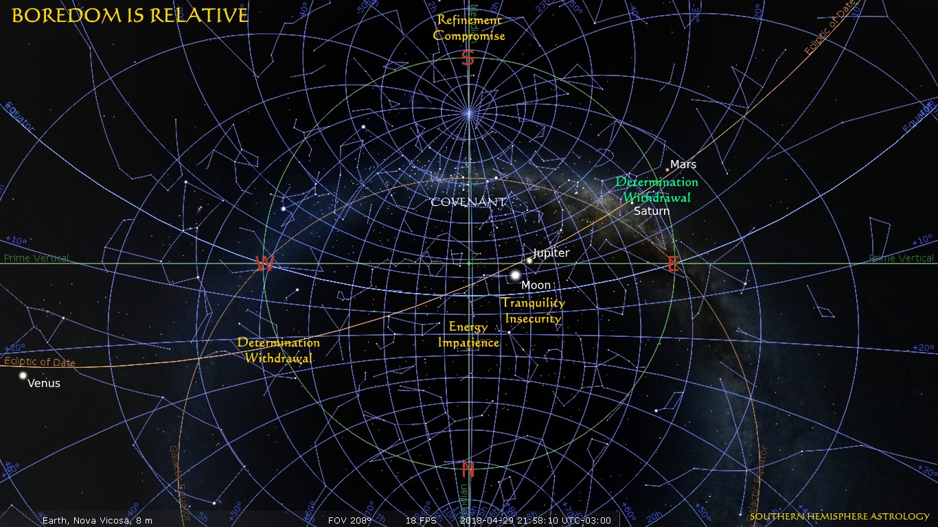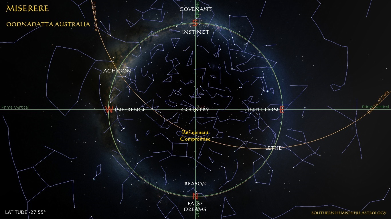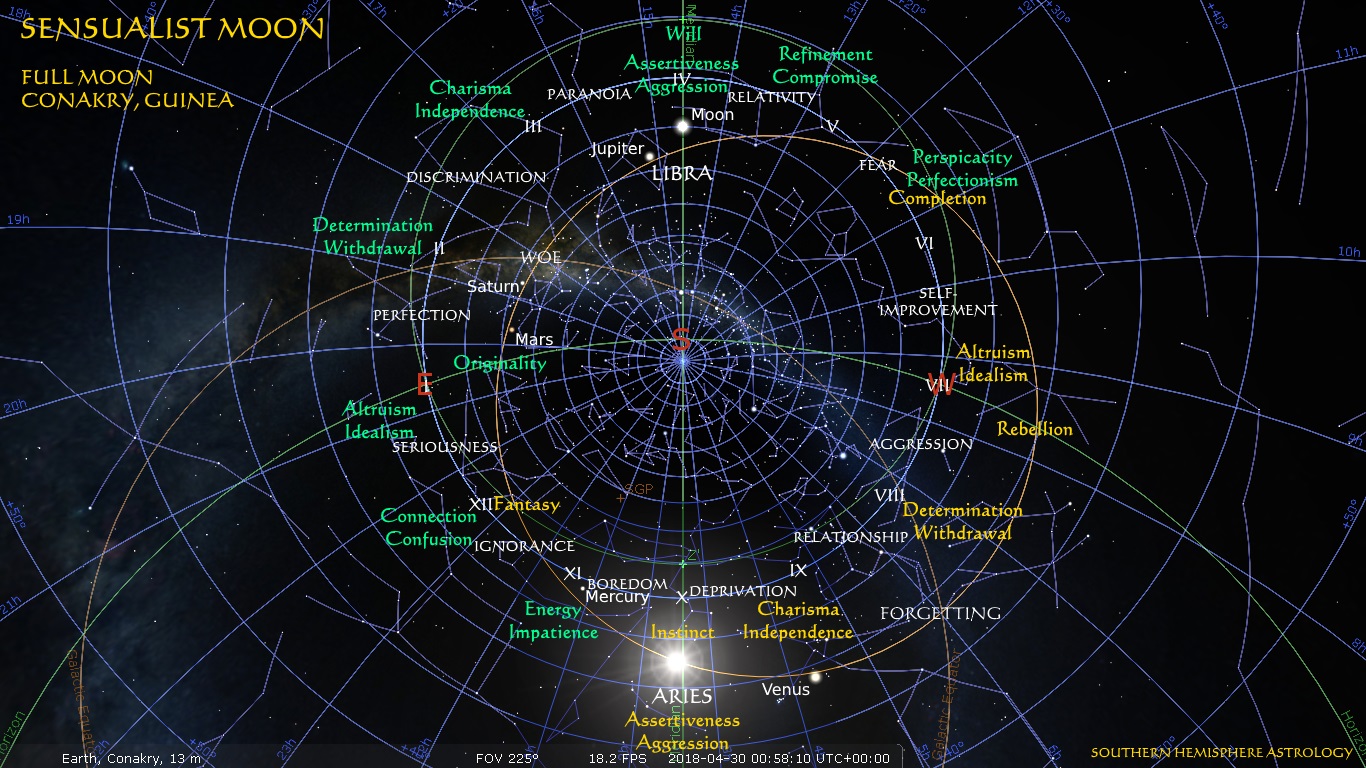 From my equal divisions of the Ecliptic, I place the Moon in Libra, the scales of colonial justice, and the Sign of Taurus, which after all, is not as ridiculous as placing it in the Scorpion, as Northern Hemisphere tropical astrology does. Astronomical definitions also place the Moon in Libra, but do hemispheric seasonal differences, mathematics and geometry make what a child might see more real?