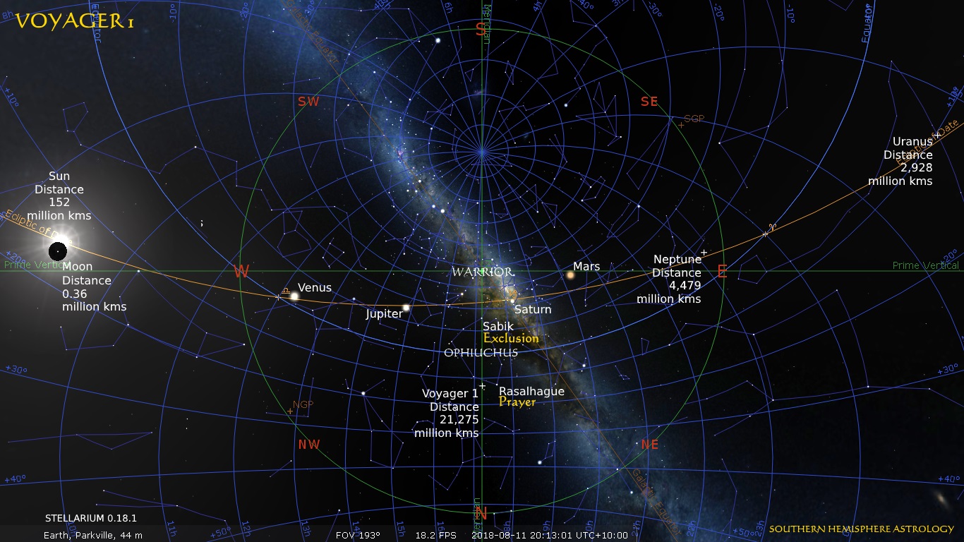 Antares, 11 million years old, is 550 light-years away, a supergiant 12 times the Sun’s mass, 680 times its diameter and nearly 100,000 times its luminosity. Its nightfall transit heralds the arrival of true Spring’s generic obligations in the South. It is one of the cardinal Royal Stars.
