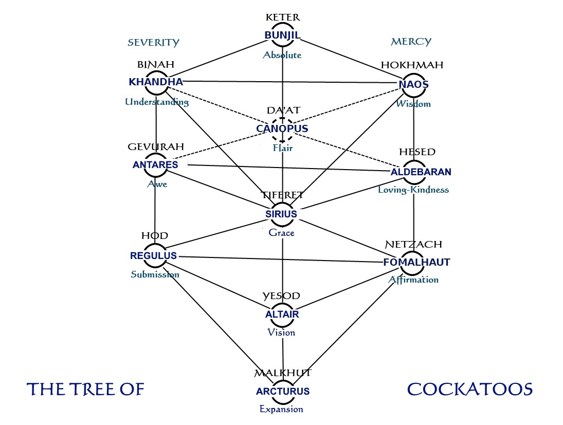 Angels, Aquarius Moon, Body, Connection, Consciousness, Country, Meditation, Monk Moon, Perspicacity, Sefirot, Underworld, White Cockatoo