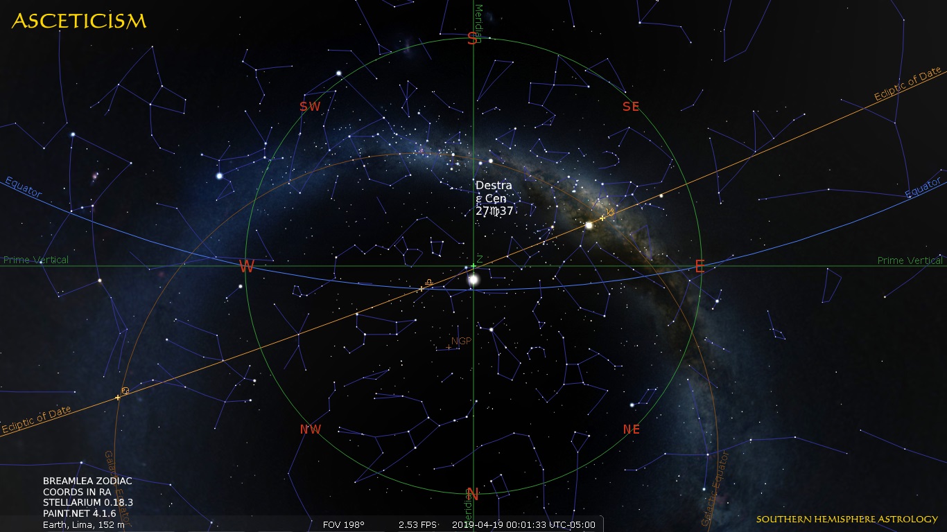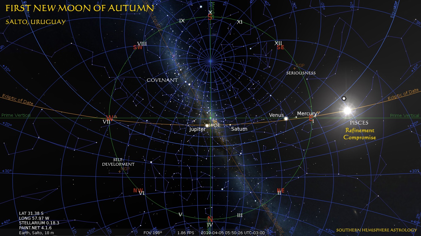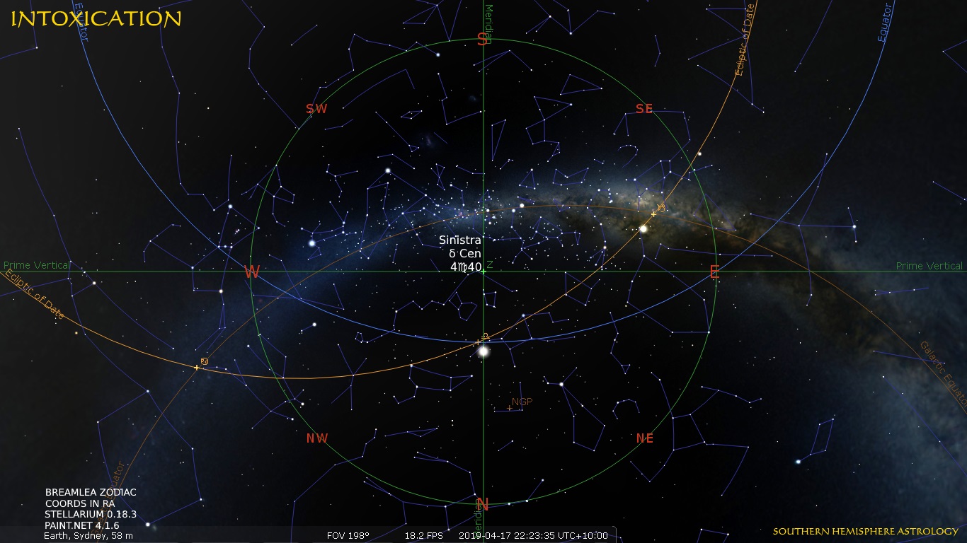 None of this self-discovery business needs to be anxious, dear reader, even in the event that it is not merely incidental that we are at Easter once again and throngs of candles will soon be wending their way through the nightscapes of Christian cities. To take part in such a procession is not usually the privilege of the sensualist, but he is nevertheless bedazzled by the extraordinary synchronicity of the annual procession and midnight transits of the Easter Moon and the Southern Cross. Have candle holders never wondered about the night sky which grounded the followers of Jesus after their prophet’s martyrdom? What were they staring at, indeed, when tomorrow became today? The one thing you cannot hide from the senses is meaning! But hark, the sensualist is not gawping at the Moon, but in the opposite direction, and the Moon’s gaze is boring through the back of his head, or would be, if the Moon and sensualist were not one and the same. The sensualist’s art is the transparency of walls. Is the Full Moon in Libra or Virgo? Take your pick.
