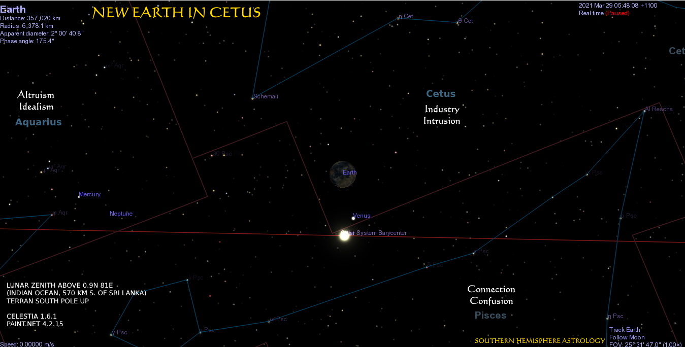 We will get to an explanation presently, but first consider the Constellation, Cetus. What is the basis of the attributes I have given it? Had Babylonian, Greek or mediaeval European taxonomers seen Cetus our way up, they would possibly have called it Vespa, the Wasp, because that’s what it resembles in the South, with a stinger to the west and a proboscis to the east, in celestial context which only came to make sense when Southerners began to ride horses, and the Fishes revealed themselves as a presumptuous rider on Pegasus whose moomba in jodphurs was worth investigating. Diphda is antagonistic and Menkar is intrusive, but the industry of the Potter Wasp, an artisan if there ever was one, is both beguiling and inspiring. It is difficult to assess the impression we make on others, though convention has it that there are those who ‘get’ us and those who don’t. The passage of the Earth through Vespa (Cetus) depends on where the Moon’s nodes are. This orbit we Earthlings are giving the impression of both positive and negative characteristics of waspishness, whichever way up we ought to be viewed, between 15:28 on the 28th and 08:25 on the 29th UTC, and after a day and two hours in Pisces, 10:45 and 15:14 on the 30th UTC. Know your time differences? Then mind how you go!
