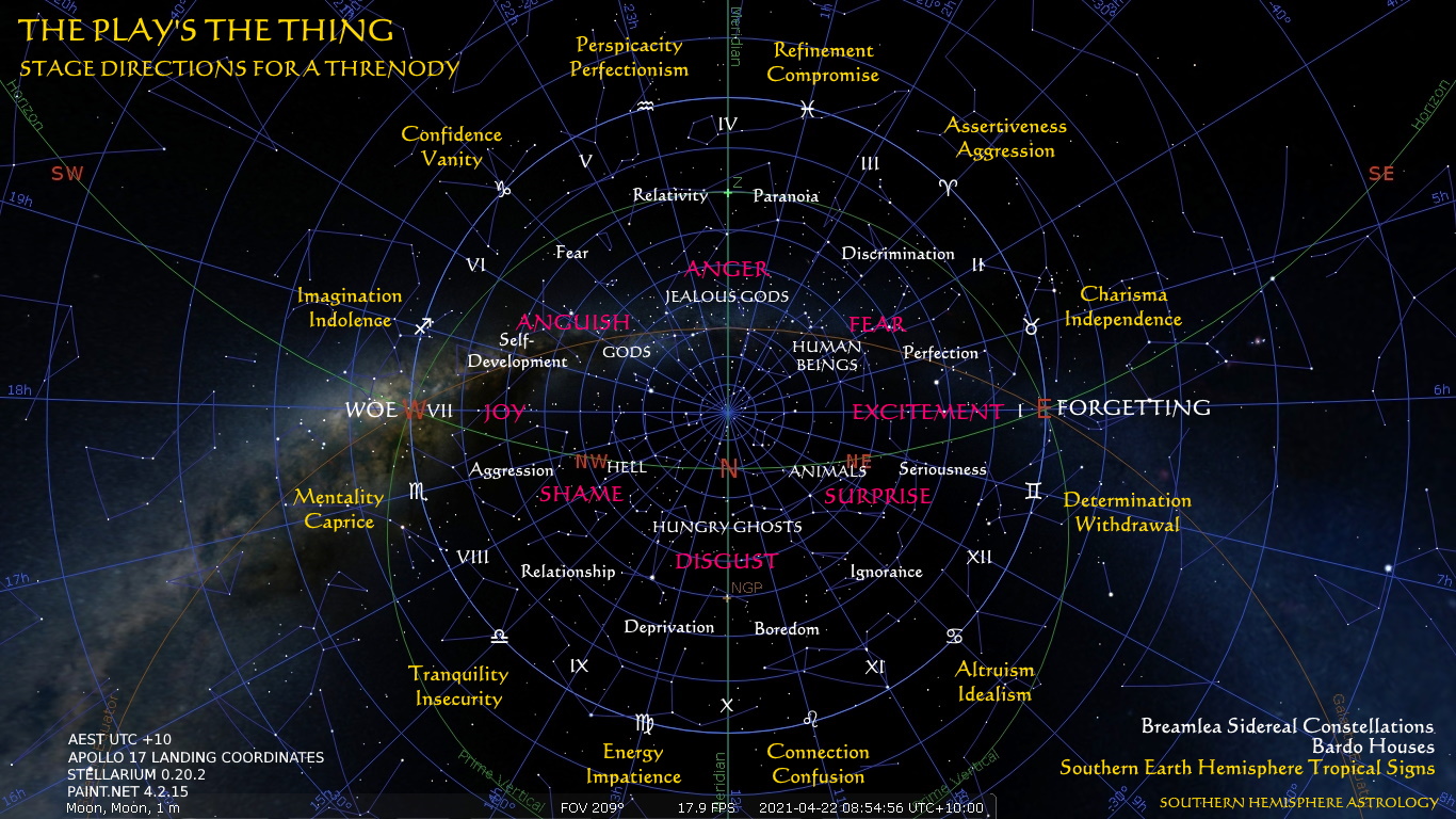 Nonetheless, a Full Moon in the Constellation of Libra, once associated with the scales of justice, is much more likely in the Southern Hemisphere to share a meadow with Ferdinand than to contest anachronistically systematised seasons of Earth. However, there is no absence of anxiety when you put Libra’s jackboot at the back of your head (looking south) to contemplate the skewering on an Indigenous spear of the merino known as Lupus, with the legacy of the retaliation of colonial law staining Left and Right forever.