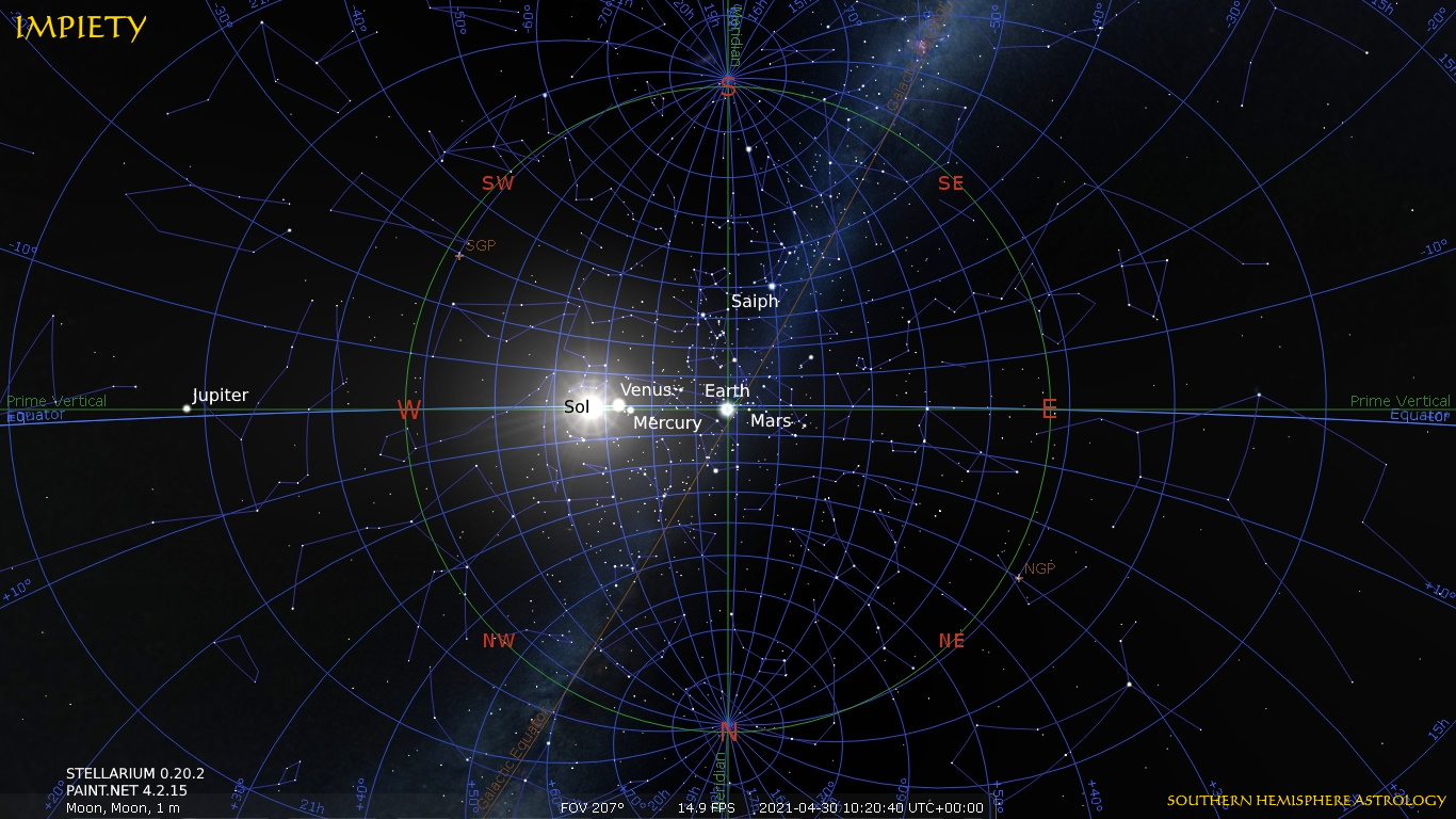 The Moon does it. Always has, tidally, but also in the contamination he brings to any wife and mansion from all the others. His presence brings absence and a whiff of betrayal. In a few Earth days he will cross the Acheron, and what will preserve him in its turbulence is not any forgiveness from Earth for primordial transgressions, but knowing that the last thing the crescent Earth will forget as she plunges into the Lethe is the impious hauteur of Saiph, the Moon’s naked Melanesian queen, twerking at the riverbank where she wrings eternity from her seaweed.