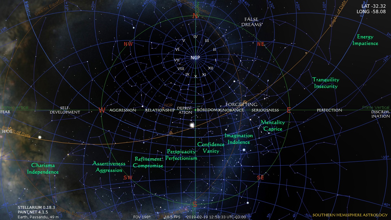 If you are passing through Guildford on the Midland Highway in Victoria, latitude 37.1 degrees south, pull over about 70 metres north of the Loddon, wait until midnight (at this time of year), when the Teapot is in the west, and see if there are any ghosts hanging about. Along the 37th parallel of north latitude the time to look out for restless spirits, and perhaps be one yourself, is when Taurus and Gemini straddle the west, and the ancestors along the Lethe are visible between late November and mid-April. The influence on relationships of the Electric Axis of Jayne and Johndro, the so-called Destiny’s Gate, would be for most people yet another empty astrological superstition, but in a world in which everything is connected it might be wise to hedge our bets, and also reserve judgment on the possibility of lingering Stone Age conceptions of the Milky Way and the cardinal directions. What? You don’t have any?