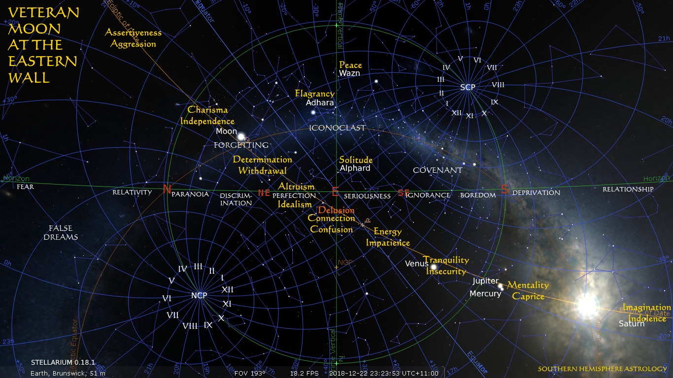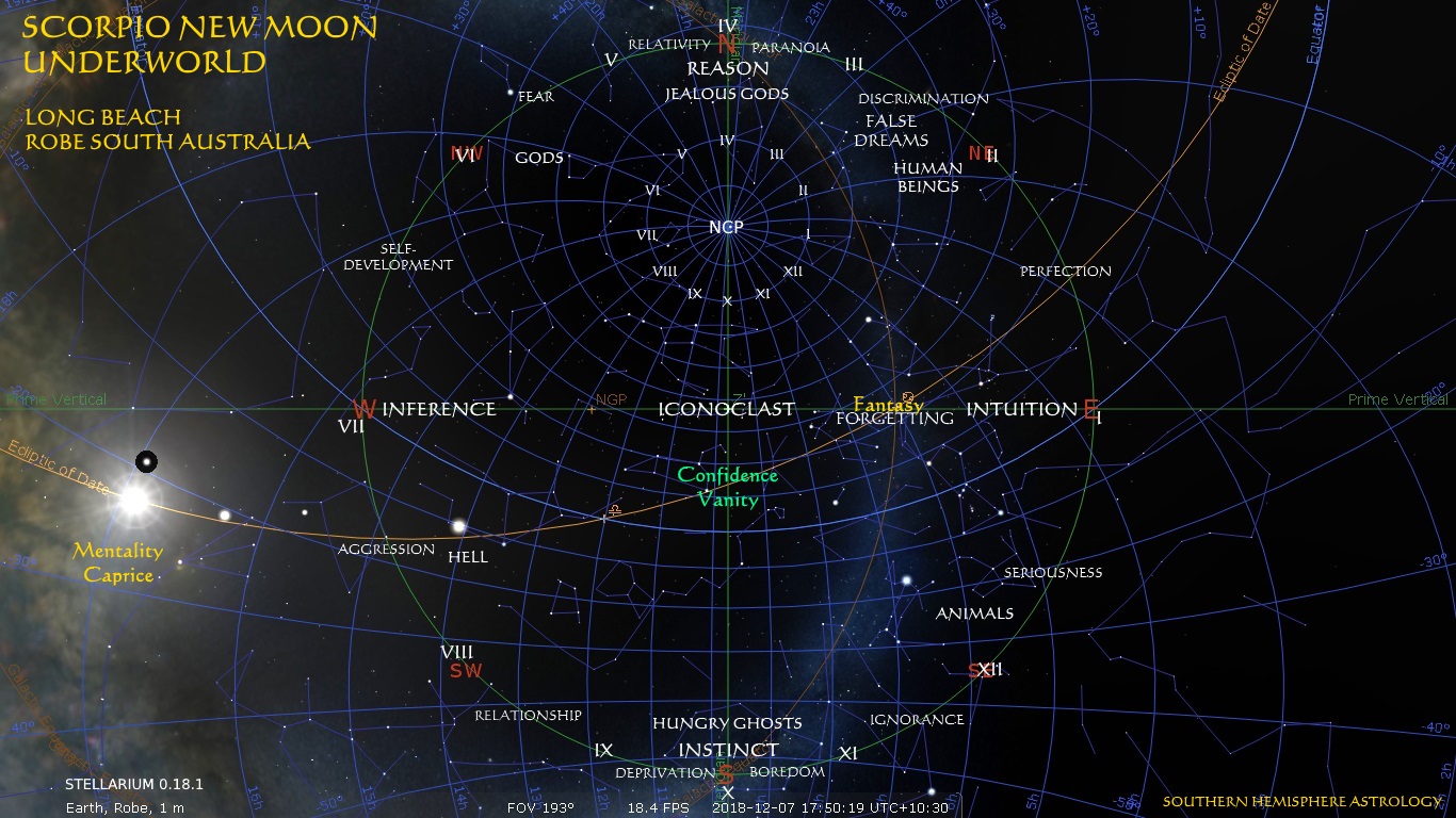 The Moon, on the other hand, is barely begun on a new circuit of the Zodiac, which begins by convention in southern hemisphere autumn. Perhaps it is never the wrong time to start again. This is of course a human perspective. No matter how empty of independent reality we recognize things to be, we still order them in systems and structures of the intellect. The global economy is a unity of alienations. The Breamlea Zodiac measures from Sagittarius as well as the equinox in Pisces. The Moon is full when it is directly in line with the Sun and the Earth, and where it transits at solar midnight.