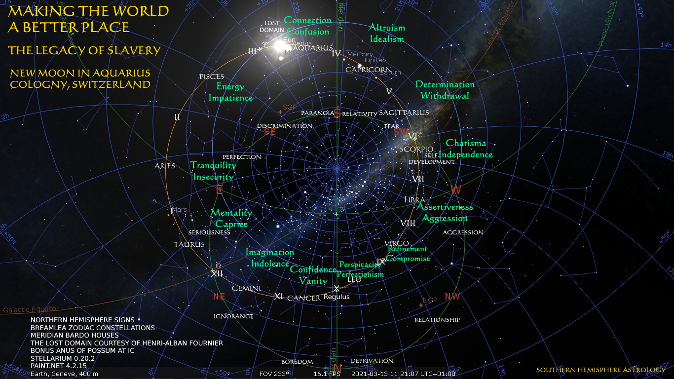 Whether you use identity to attack or defend, or like Southern Hemisphere Astrology mystify it to undermine it at every turn, we must all deal with it, because no matter how desirable adaptability to change and equanimity in ambiguity may seem, definition and discrimination are here to stay. Most people couldn’t produce a line drawing to save themselves, but everybody can colour in. Walls, as for example in Zodiac divisions, are what humans are made of. Look at the great tide of humanity spilling over historical borders across the planet: what does it encounter, and what does it bring in the flood? Exclusion! Identity! Do the Southern Signs of an English night portend integration, in the way Northern Signs purported to in colonial times?